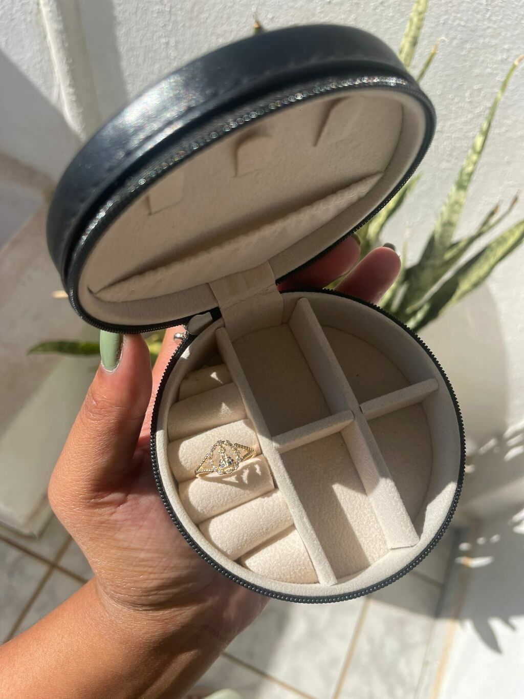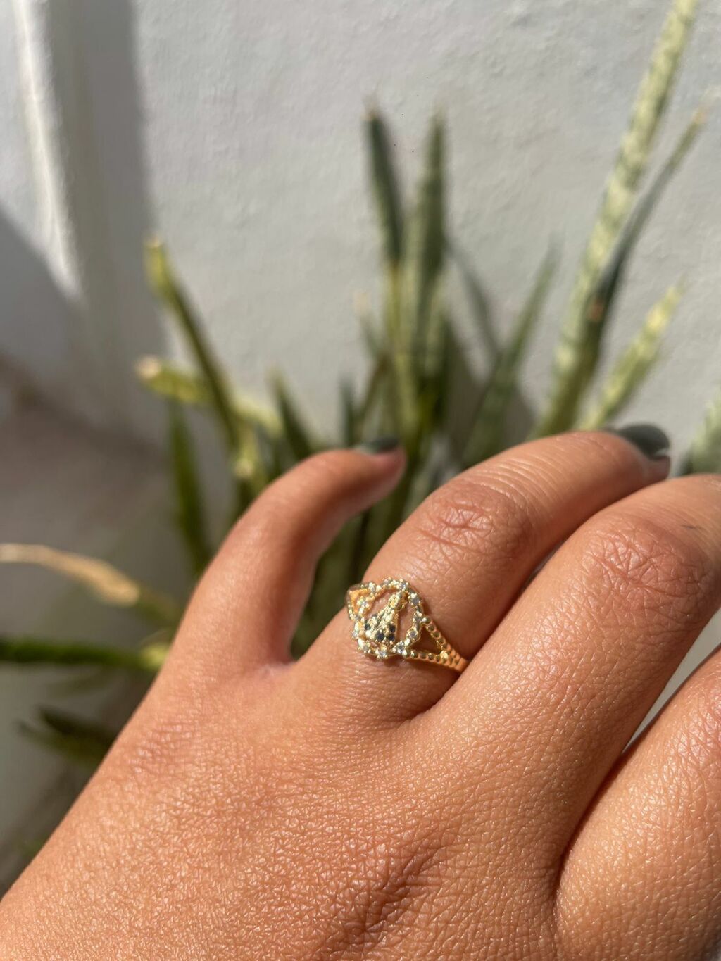Um anel que une fé, delicadeza e brilho em uma peça única.